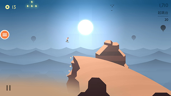 1、打開阿爾托的奧德賽游戲,開始向前滑行,前方就是大鴻溝了,在快要到達鴻溝之前全力加速,等你的速度達到一定程度,繼續(xù)向前滑行,