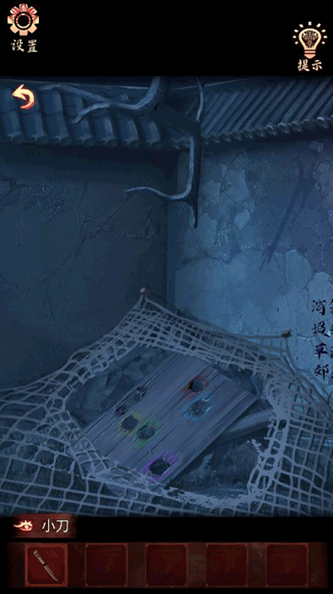 3、點擊墻角的網(wǎng),用【抽繩】抽落樹上的【小刀】
