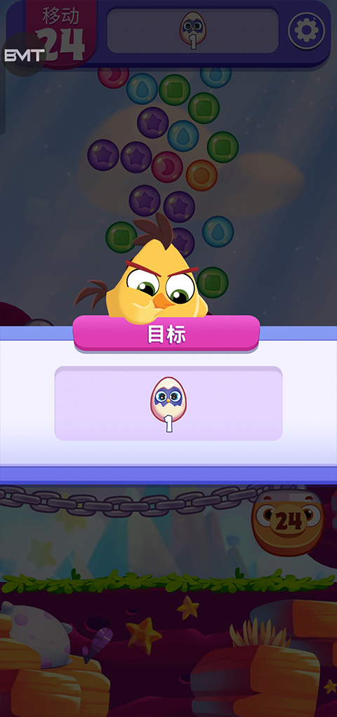 2、上方有數(shù)量顏色的泡泡是玩家需要完成的任務(wù)。并且在下方的小鳥為強(qiáng)力的道具;