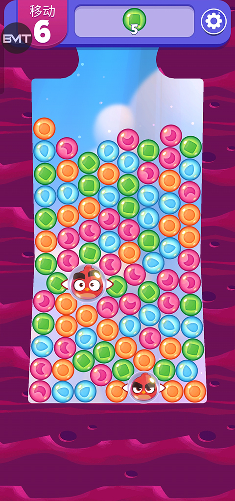 1、首先打開憤怒的小鳥夢幻爆破,玩家可以點(diǎn)擊相同的泡泡來消除它們;