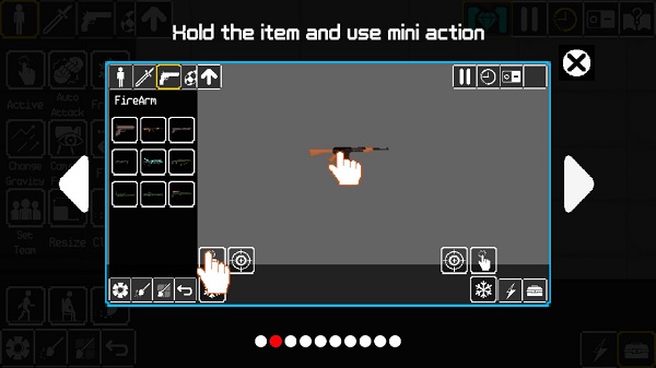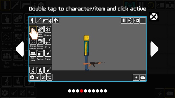 1、進入游戲后,在沙盒創(chuàng)造的左上方有關(guān)于人物、武器的下拉菜單,選擇人物,點擊地圖場景即可添加。
