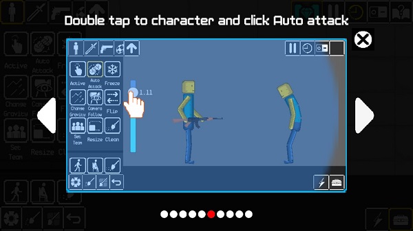 6、在玩家初步布置好一切后,可以雙擊人物,打開功能欄,選擇Auto Attack,然后拉動左側(cè)的進度條進行自動射擊。