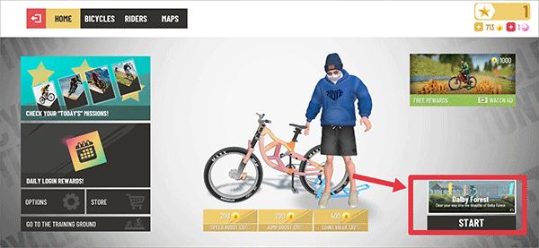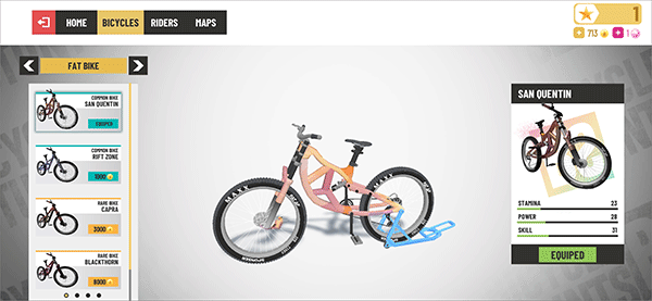 6、而收集起來的金幣可以在商城中購買新的自行車,不同的自行車他的速度等屬性也會不一樣