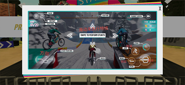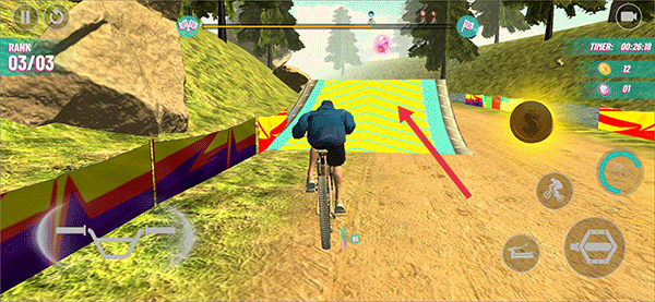 4、知道基礎操作方式后就可以正式開始游戲啦,在騎行時駕駛自行車通過加速道可以讓你的速度變得更快哦