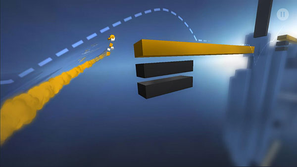 2、用右拇指點擊屏幕控制角色跳躍過黑色障礙。