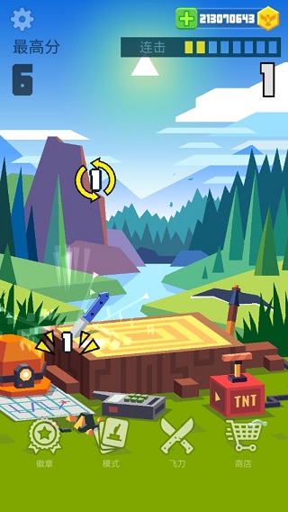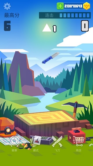 游戲中共有打靶模式、攀爬模式、過關(guān)模式和連擊模式4種玩法,4種模式各有玩法,也有著自己的規(guī)則和特點。不過作為游戲的起點、在進行其他的玩法和嘗試其他道具之前最好在連擊模式中熟悉刀具的特點和重量后再行游戲。