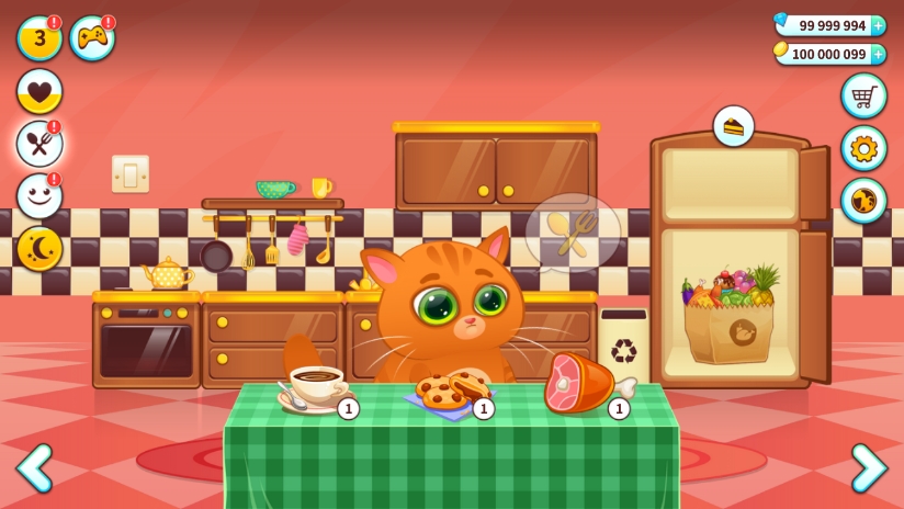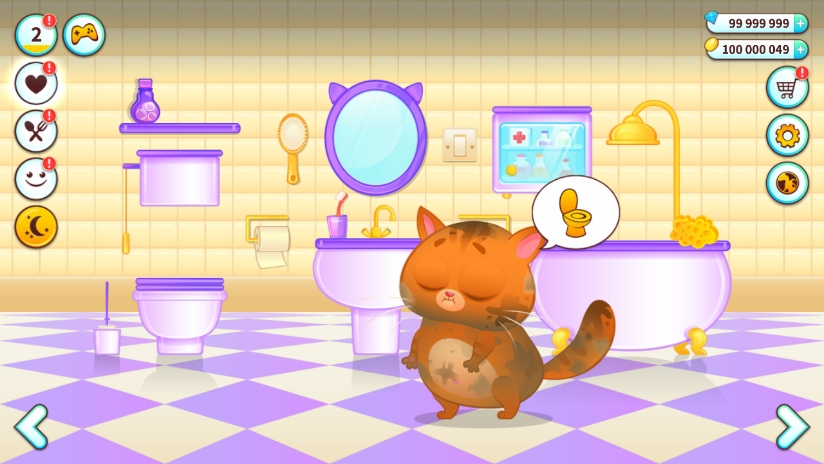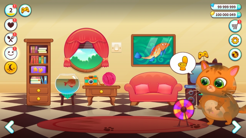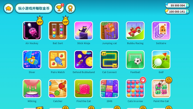 3、有30多個有趣的小游戲可以為你提供食物和金幣,你可以用這些金幣為你的虛擬寵物貓買東西。Catcher, Cat Connect, Find the Cat, 2048, Paint the Cat, Jump, Pop Balloons, Cheese Builder, Fish Ninja, Cat Sings, Nightmare, Jumping Cat, Diver, Stick Ninja, 等。
