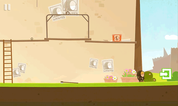 9、移動(dòng)到圖中位置,點(diǎn)擊手掌,繩子松開,中間平臺(tái)掉落。