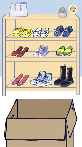 6、這里是女主收拾房間,把物品一個(gè)個(gè)拖到箱子內(nèi)就可以了;
