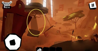 第六個(gè)玩偶如下圖位置的樹上。把石頭扔向樹以后,玩偶就會掉下來。