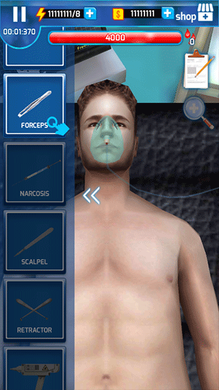 5、手術(shù)醫(yī)生是個(gè)嚴(yán)肅的職業(yè),每一步操作都會(huì)造成無(wú)法挽回的結(jié)果,因此你必須在規(guī)定的時(shí)間內(nèi)完成手術(shù)才能完成任務(wù);