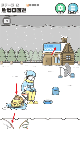 點(diǎn)擊遠(yuǎn)處的廣告牌上的魚竿即可獲得,然后點(diǎn)擊書包獲得魚餌,接著點(diǎn)擊釣竿即可進(jìn)行釣魚,成功掉上魚即可過關(guān)。