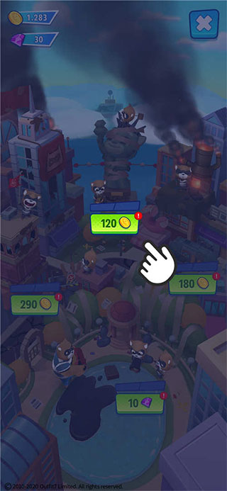 (2)經(jīng)營(yíng)養(yǎng)成:使用金幣,逐一驅(qū)趕被浣熊占據(jù)的城市建造,解鎖下一章主題。