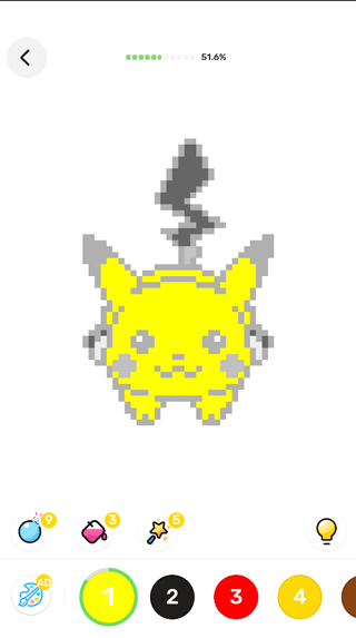 1、進入游戲后在主頁就能選擇各種卡通圖像進行填充顏色,我們選擇自己喜歡的圖案進行上色,小編這里選擇了大家都熟悉的皮卡丘