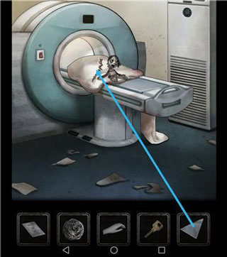 1、檢查室,點擊玻璃里的機器,木偶放進去,外面電腦顯示兩個圖案。