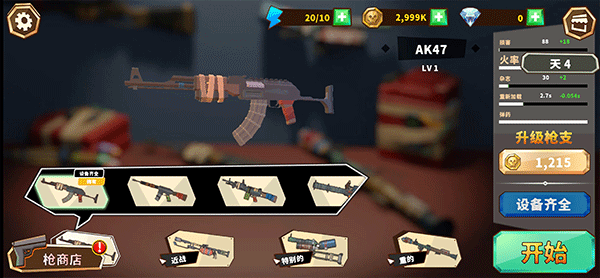 2、點(diǎn)擊槍商店,可以在這里購買各種槍械,并且可以對槍械進(jìn)行升級;