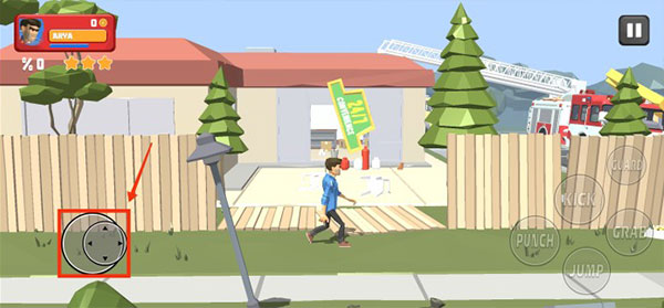 5、進(jìn)入游戲場景,我們可以通過滑動左下方的方向按鈕控制角色移動,