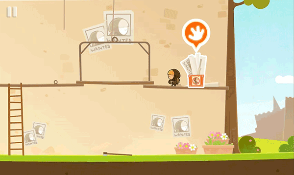 9、移動(dòng)到圖中位置,點(diǎn)擊手掌,繩子松開,中間平臺(tái)掉落。