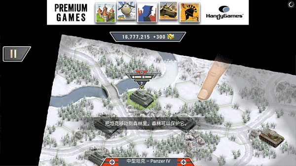 6、攻擊完可繼續(xù)移動坦克,當出現(xiàn)新的敵機時,選擇另一輛坦克移動到森林里對你進行保護!