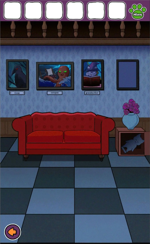 2、向右到有紅色沙發(fā)的房間,用鑰匙打開花瓶下的柜子獲得石像。