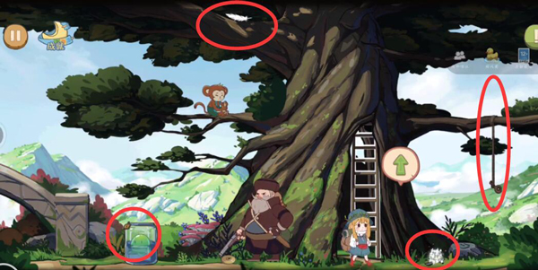 2、第一章第一關道具找齊全后,點擊向右的箭頭進入第二關!找到神鳥的羽毛可以找到神鳥!