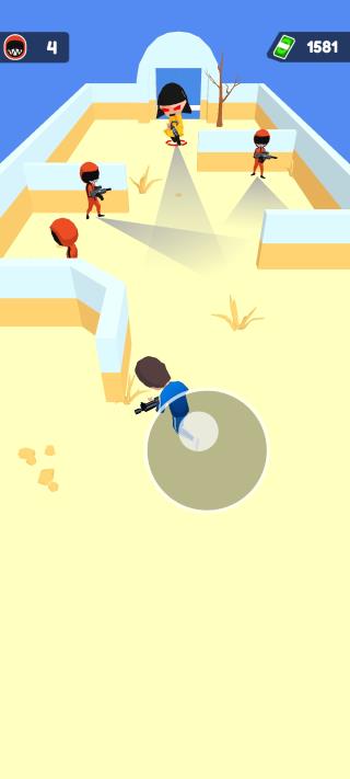 2、我們停下可以射擊敵人,不過別被他發(fā)現(xiàn)。