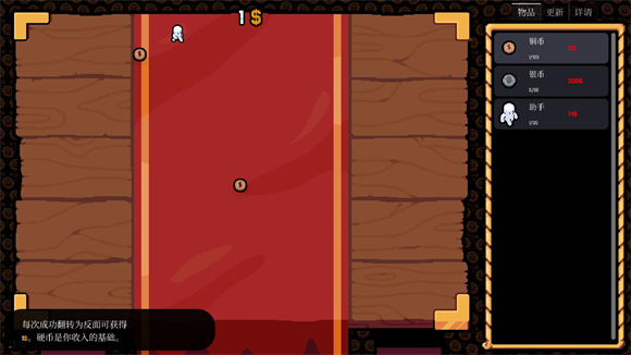 1、進入幸運硬幣漢化版游戲中,玩家可以擊硬幣來將其翻轉(zhuǎn),如果是正面就可以獲得一金幣。