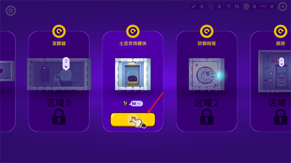 3、游戲分為了探索和建造兩個(gè)部分,在基地內(nèi),我們可以挑選各種設(shè)施進(jìn)行建設(shè),選中后挑選綠色區(qū)域即可。