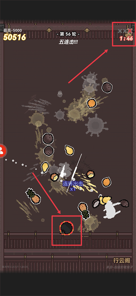 3、但在切水果時還會有炸彈的出現(xiàn),玩家要小心不要點到,當炸彈爆炸次數(shù)達到3次時游戲結束