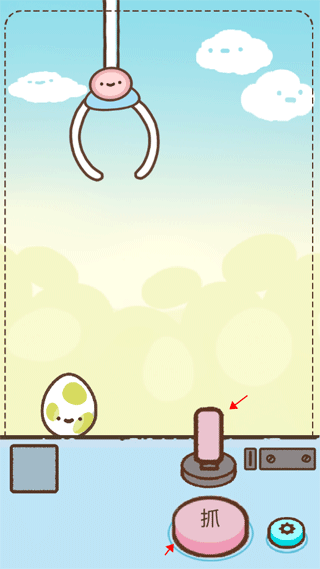 1、打開游戲之后,會有一個簡單的抓彩蛋操作,讓快速熟悉這個過程,首先就是按住上方的桿子移動最上方的爪子,當(dāng)移動到適合的位置時,點(diǎn)擊下面貼有“抓”這個文字的按鈕。