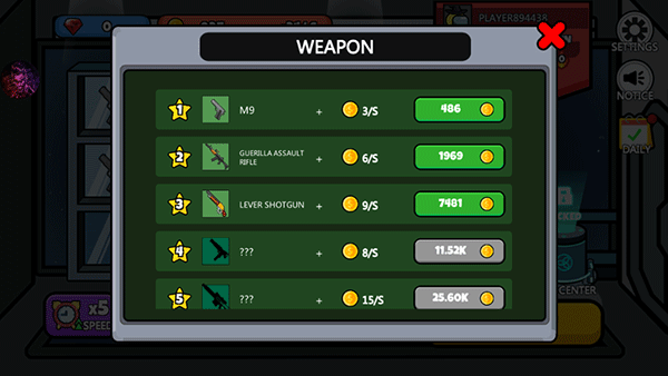 2、將相同等級(jí)的槍械移動(dòng)到一塊則能夠進(jìn)行升級(jí)。