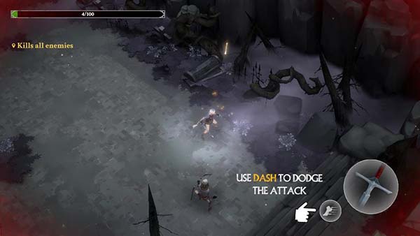 1、進入靈魂獵手地牢官方版游戲后,左手控制角色移動