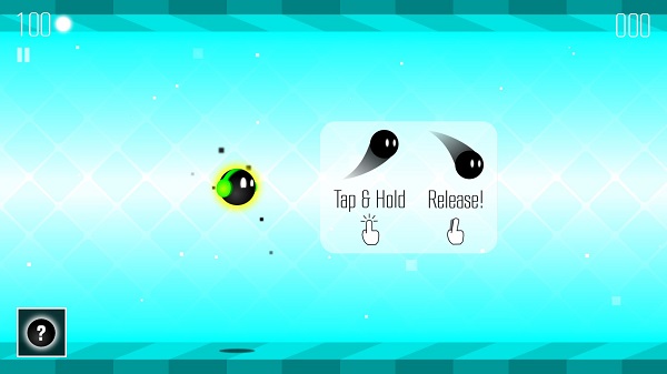 1、打開游戲,點擊屏幕就可使小球飛躍;松開手指,小球會自動落下。