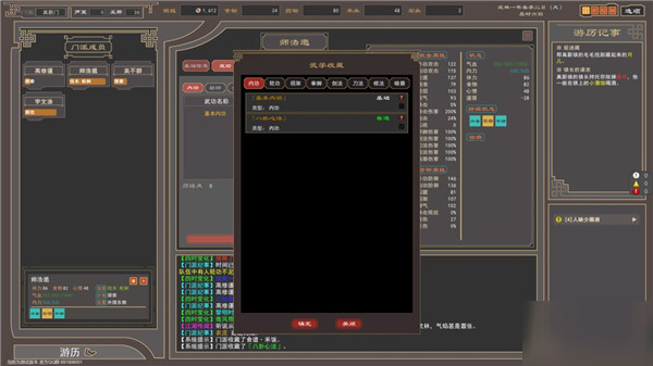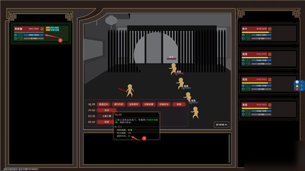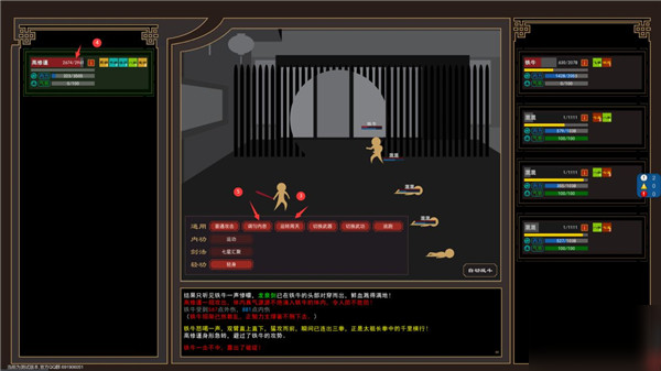 3、運(yùn)轉(zhuǎn)周天:回復(fù)約1/6的內(nèi)力,因?yàn)閮?nèi)力影響到攻擊和防御,因此當(dāng)內(nèi)力低于三分之一時(shí)就要開始注意使用運(yùn)轉(zhuǎn)周天來回復(fù)內(nèi)力。