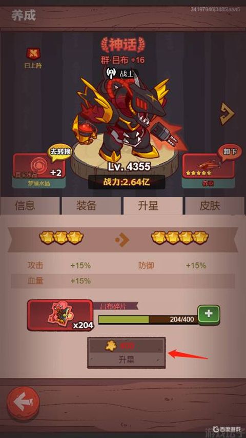 3、當以上條件都滿足后,點擊升星即可。