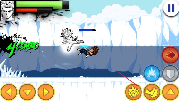 7、近身時,點擊拳擊或腳踢按鈕發(fā)起攻擊,消耗對手的血量。
