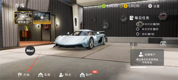 2、購買車輛后,點擊【開始】按鈕選擇游戲模式。