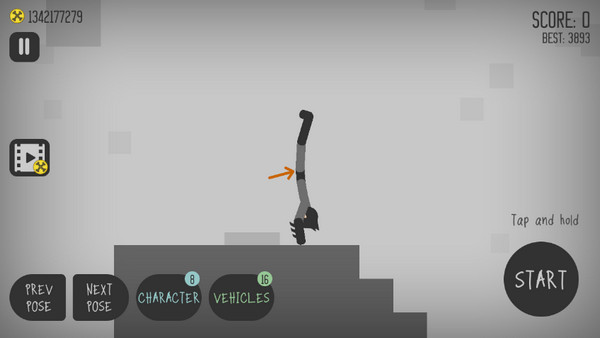 1、進(jìn)入游戲,對游戲的主要操作就是三個(gè)按鈕,左下角的最左邊二個(gè)按鈕,是切換不同的姿勢的,右下角的‘START’開始按鈕。