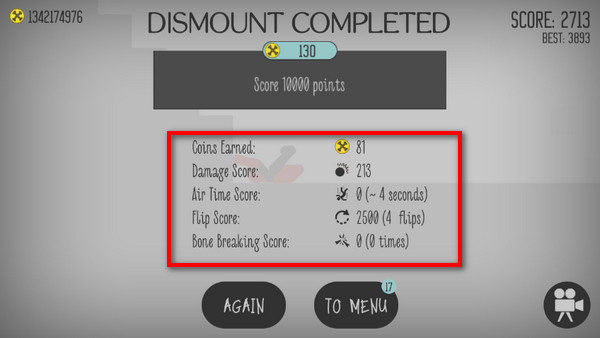 點(diǎn)擊下方的“AGAIN”按鈕,是重新開始該關(guān)卡。