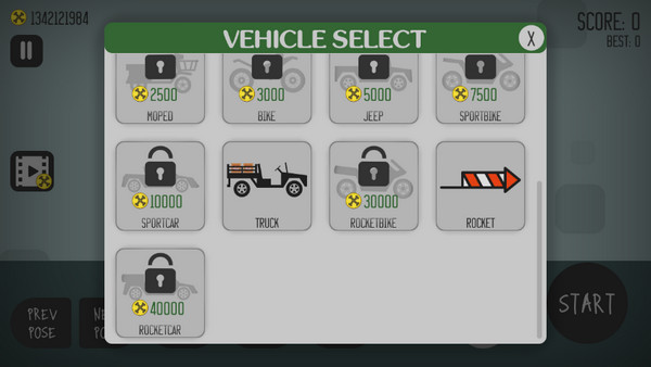 這就是購買車輛的頁面,每種車需要不同數(shù)量的金幣,有足夠的才能買對應(yīng)的車,當(dāng)然越貴的車,受傷指數(shù)會越大的。