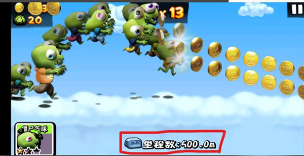 2、道具:跑的過程中會(huì)有一個(gè)類似于,箱子的東西,跳起來碰到他,就會(huì)隨機(jī)給你一個(gè)道具。道具的種類貌似有波浪(超愛)UFO(隔段時(shí)間來個(gè)僵尸)小金人(碰到的障礙都會(huì)變成金幣)橄欖球員(鐵頭功2333)忍者(跳的賊高,可以把障礙切開)大頭僵尸(僵尸會(huì)全部飄到上方。長摁屏幕下降)等等等等