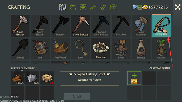 1、在工具制造頁面消耗材料制作魚竿