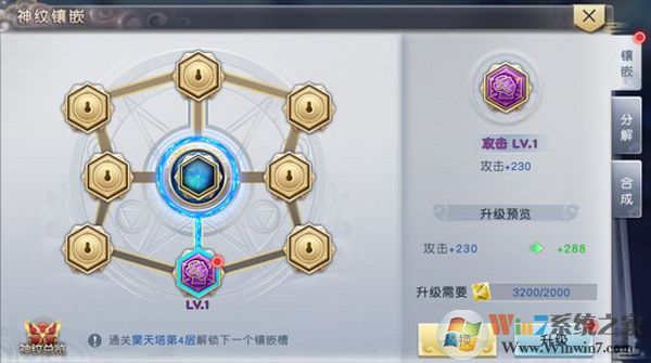 3、神紋可以進(jìn)行升級,獲得更多的屬性加成,升級神紋需要消耗神紋精華,神紋精華可通過通關(guān)通天塔及分解不需要的神紋獲得。