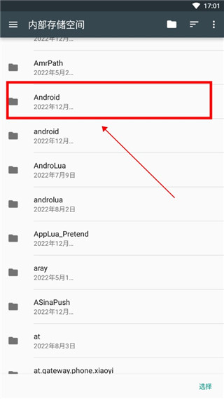 3、開啟【全部文件】后,找到【Android】,不要選擇前面帶【.】的同名文件。