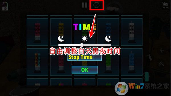 6、點(diǎn)擊上方的時鐘按鈕,還可以自由調(diào)整地圖的白天黑夜時間,最好的放煙花氛圍當(dāng)然是深夜??!