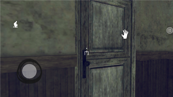 4、左邊控制角色的方向,右邊每次碰到物品就會出發(fā)相關功能鍵,比如我們點擊手掌就可以打開房門;