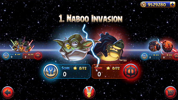 4、20個(gè)全新鳥(niǎo)兒陣營(yíng)關(guān)卡!在Naboo殘?jiān)珨啾诘膽?zhàn)場(chǎng)上直面敵人,一直將戰(zhàn)斗延續(xù)至太空中!
