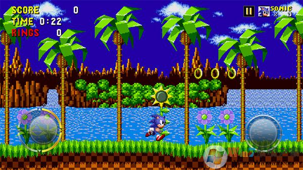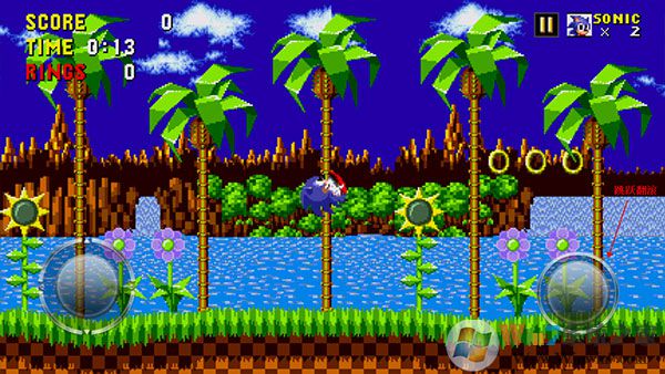 7、右下角是跳躍,連續(xù)點擊,索尼克可以快速翻滾。