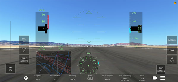 好了沒講的鍵可不用,起飛基本都會要先定好目的地,降落比較難,進場速度控制在200左右,進場就是機場跑道外的白色長三角線,駕駛面右下方小地圖可見,進場前可把小地圖放大不會偏航。