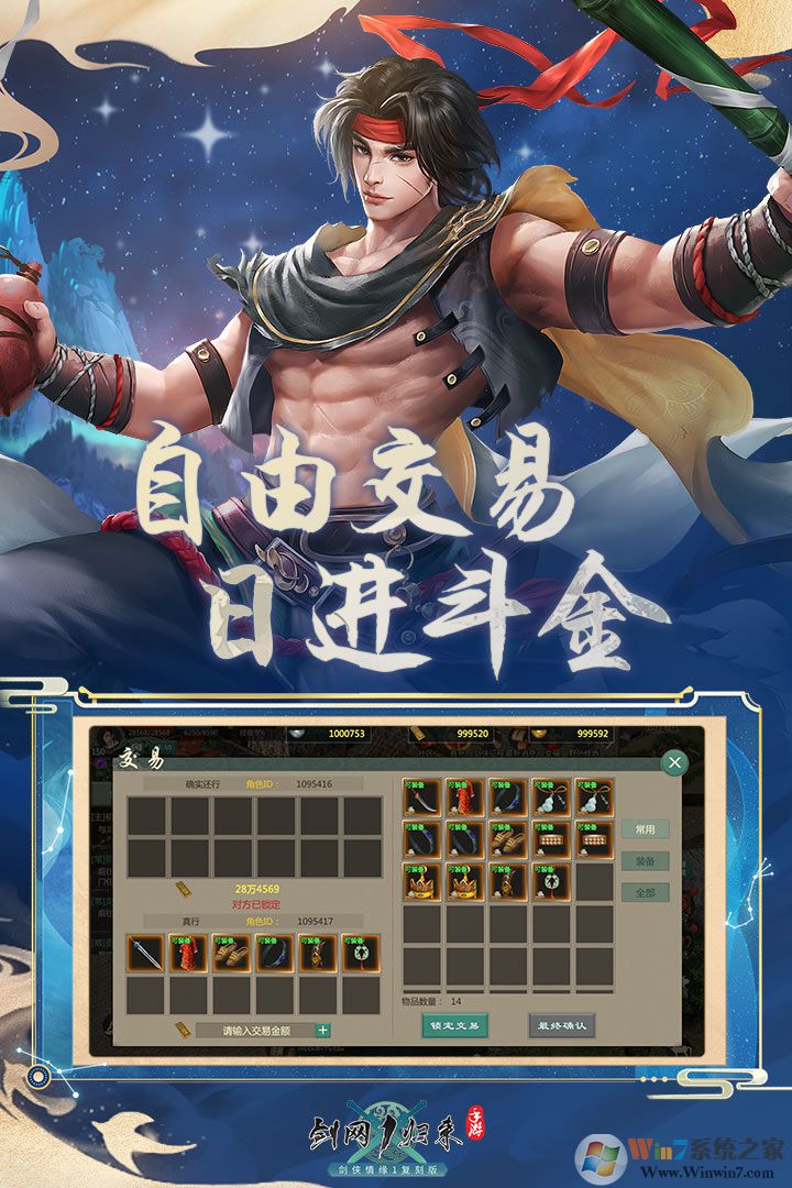 所有掉落的裝備不綁定,玩家可一對一交易,亦可擺攤交易,賺取銀票。幫會搶首領(lǐng)贏道具,拍賣道具均分金幣。